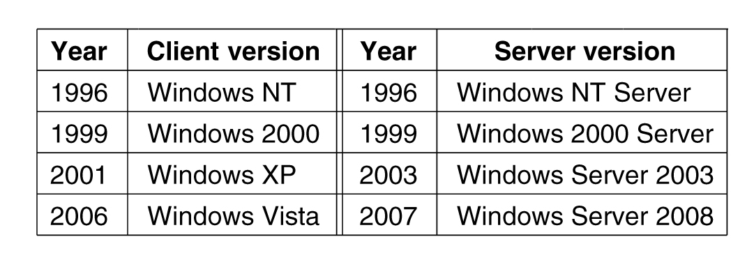 There were earlier versions of NT, but Windows 2000 was the first widely implemented system, and was the standard for several years, followed by Windows XP, and later Windows Vista.