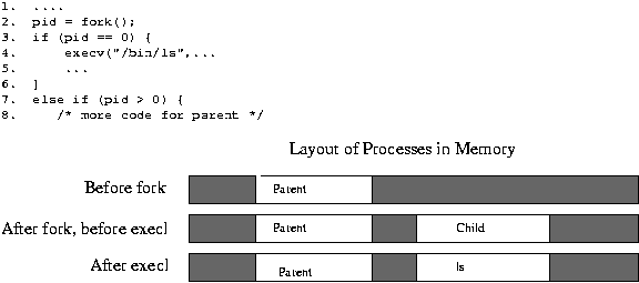 It should have occurred to you that since fork can only create a copy of itself, it is of limited use. The fork call is usually used with another system call, exec, which overwrites the entire process space with a completely new process image. Execution of the new image starts at the beginning. Exec is actually a family of six system calls, the simplest of which is execl Here is the function prototype