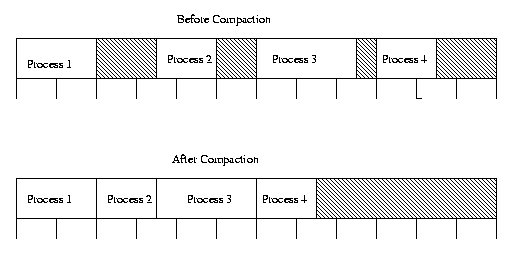 One solution to the problem of fragmentation is to periodically run a program which compacts memory by moving all of the current processes to replace the small holes with one large hole.