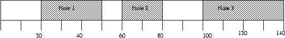 The first process takes up 20 units of memory, and is loaded at addresses 20 - 39. The next process takes up 40 units of memory and is loaded at addresses 40 - 79. The the third process takes up 30 units of memory and is loaded at addresses 80 - 110. Memory now looks like this.