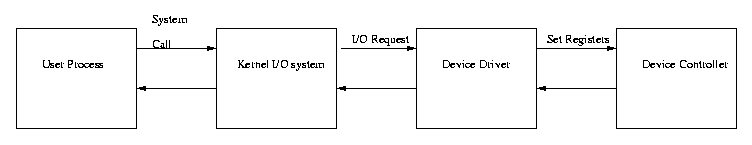Each device also has a device driver. A device driver is a piece of software, usually residing in the kernel, which communicates requests between the kernel I/O system and the device controller. Linux and other newer operating systems have a mechanism in which device controllers can be installed on the fly, i.e. without having to reboot the operating system.