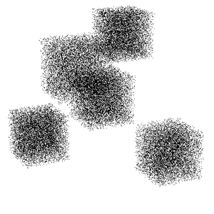 We can render an IFS by iterating the transform on random input points from the unit square. We approximate the fixed point by applying the transformation many times. The algorithm is as follows: