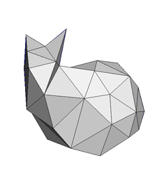 The goal of this assignment is to try your hand at various mesh processing tasks. A half-edge mesh adjacency data structure is provided, along with a very simple .obj mesh parser. As you modify the triangle mesh, it is critical that the manifold properties of the input surface are maintained, and that the adjacency data structure remains consistent. Throughout this assignment you are asked to consider the efficiency of various mesh operations relative to the mesh size (total # of triangles): is it quadratic, linear, logarithmic, constant, etc? Since this assignment is rather long, it's ok if you don't always implement the most efficient strategy (which may require additional data structures), but please discuss the tradeoffs in your README.txt file. Please use the provided README.txt template.