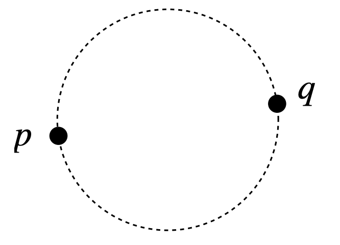 the Delaunay edge between p and q intersects its dual Voronoi edge.