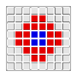 (blue) appears in the middle of the grid surrounded by a ring of