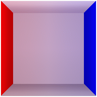 ![]() The same scene rendered using ray tracing is too dark. Even when we approximate global illumination using an ambient term, the scene is missing the characteristic color bleeding. ./render -input ../src/cornell_box_diffuse_sphere.obj -ambient_light 0.0 0.0 0.0 ./render -input ../src/cornell_box_diffuse_sphere.obj -ambient_light 0.0 0.0 0.0 -num_shadow_samples 1 ./render -input ../src/cornell_box_diffuse_sphere.obj -ambient_light 0.2 0.2 0.2 -num_shadow_samples 1 ./render -input ../src/cornell_box_diffuse_sphere.obj -ambient_light 0.2 0.2 0.2 -num_shadow_samples 10 ./render -input ../src/cornell_box_diffuse_sphere.obj -ambient_light 0.2 0.2 0.2 -num_shadow_samples 100
