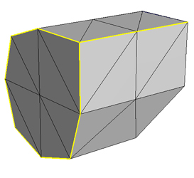 First implement the topology of an edge collapse. Identify a target edge to collapse. For now, just pick a random edge (or any edge) in the mesh. Using the adjacency data structure, identify which two triangles will be removed permanently from the model, and which other triangles will change. Choose a simple location for the remaining vertex (e.g., it's old position, or a position averaged with the deleted vertex). Note: in the provided adjacency data structure it is recommended that you will delete and then re-create triangles rather than modify them and the related edges. Initially you may want to just collapse one edge each time the "d" key is pressed.