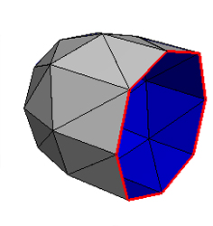 Notice that the adjacency data structure detects boundaries in the mesh and draws them with thicker red lines in the wireframe visualization:
